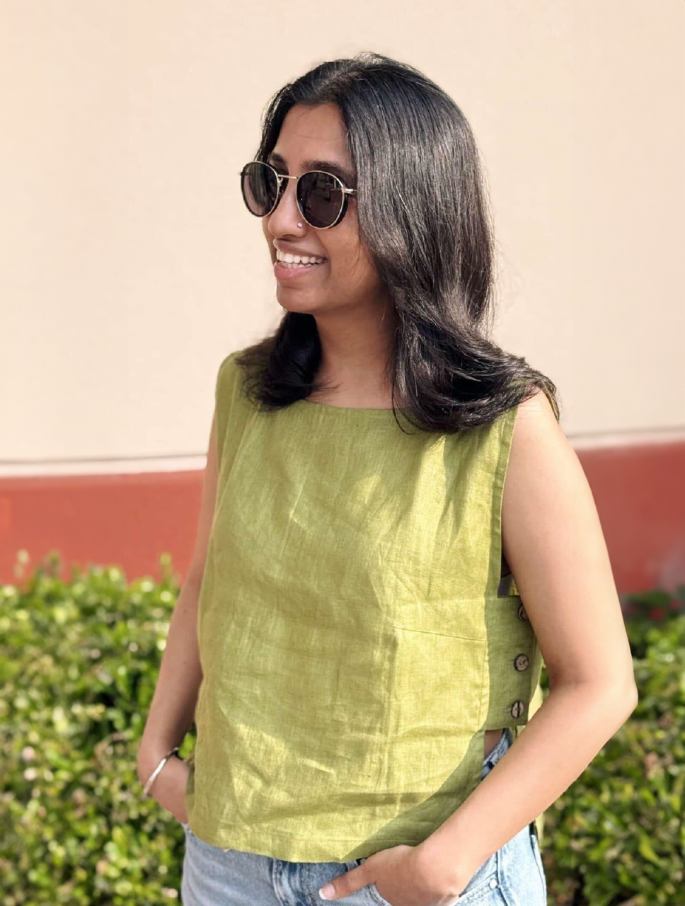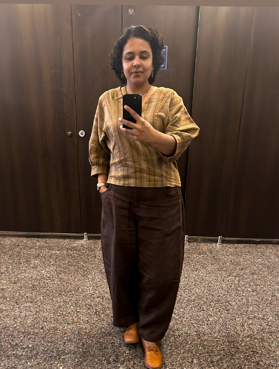 We use only 100% natural fabrics: linen, linen-cotton blends, munga tussar and organza silk. These are functional, seasonless, and made to endure. They move well and feel better the longer you live in them.