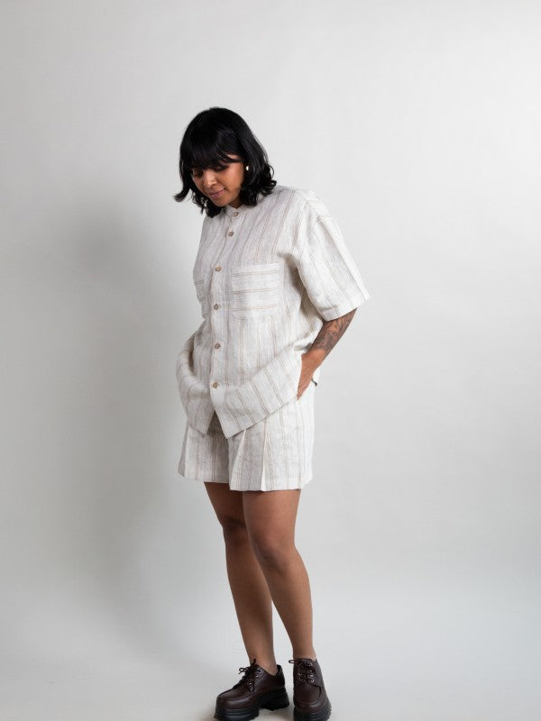 Product Description: Made for movement, made for mood. The Eddy Shorts are a summer dream in motion. Tailored from airy linen with subtle woven stripes. These high-waisted shorts feature soft pleats that create ease and comfort in focus.